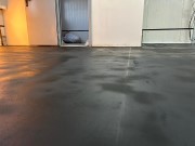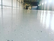 Склад, г.Атырау. Полимерное покрытие на Полиуретановой основе, цвет серый RAL 7040, блеск глянцевый, поверхность Гладкая с чипсами. Площадь - 440м²