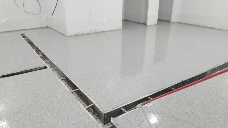 Техническое помещение, г. Аксай, Западно-Казахстанская область. Антистатическое токопроводящее полимерное покрытие на ЭД основе. Средняя толщина цветного слоя 2-2,5мм. Площадь 110 м²